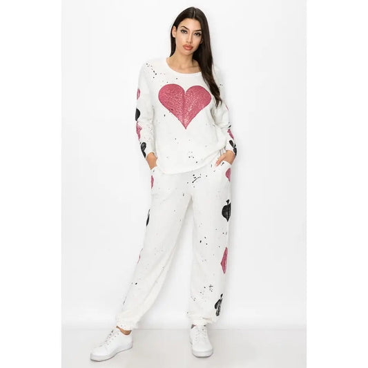 T-Party Hand Painted Poker Jogger Pants - White