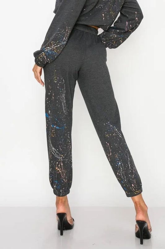 T-Party Splatter Paint Jogger Pants - Black