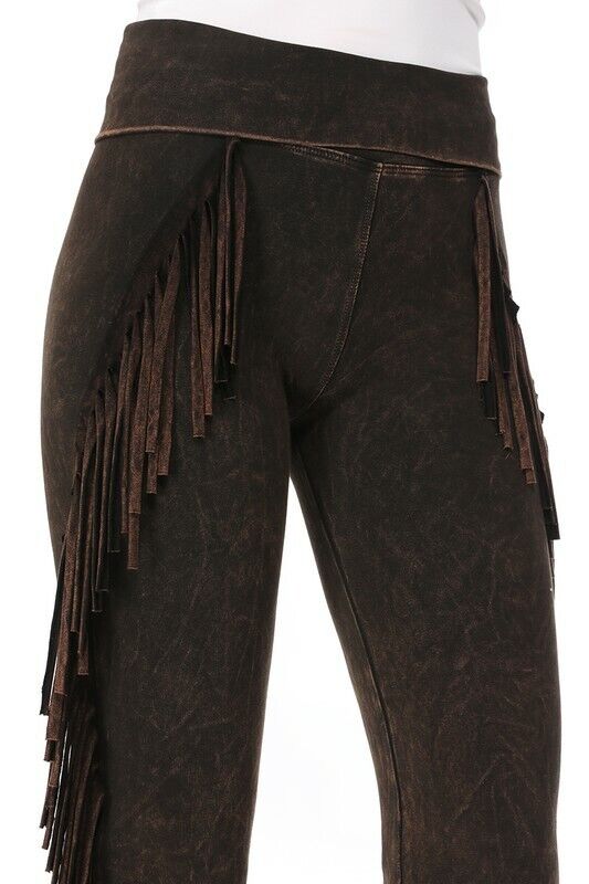 T-Party Mineral Wash Side Fringe Yoga Pants - Brown