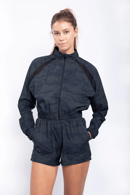 Mono B Green Atlantic Crop Zip-Up Jacket With Mesh Raglan - Dark Ocean