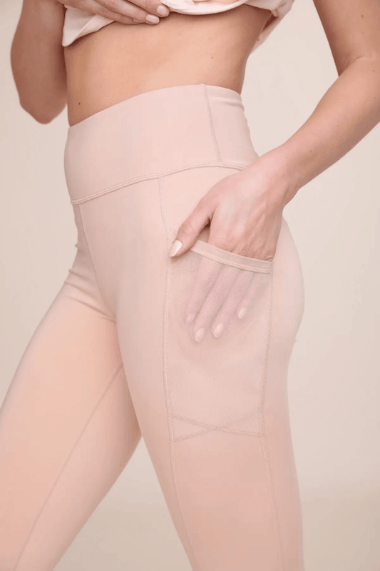 Mono B Green Overlay Mesh Pocket High-Waisted Legging - Light Camel