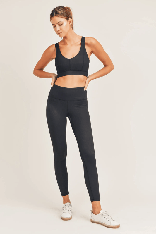 Mono B Bronze Micro Ribbed Lycra-Blend High-Waisted Legging - Black