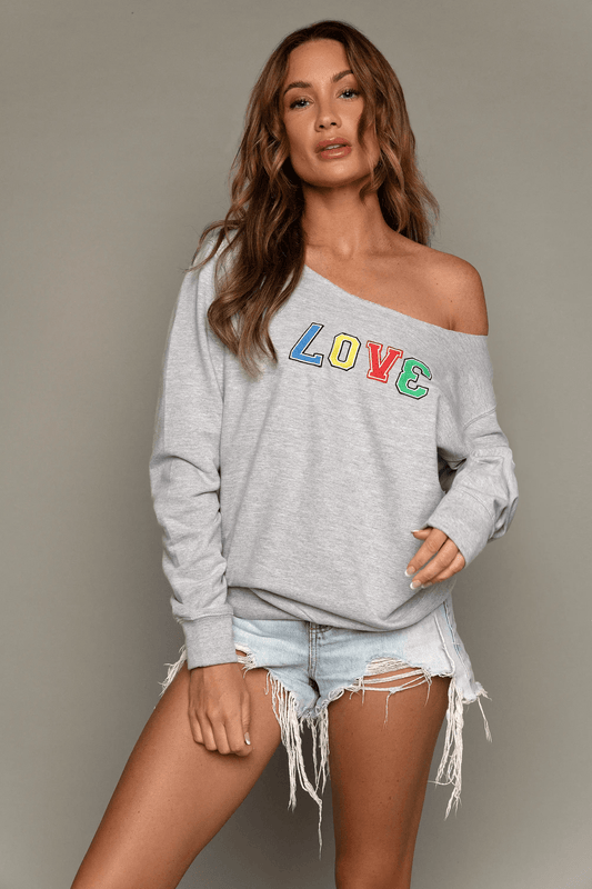 James Steward Embroidered Love Oversized Sweatshirt - Grey