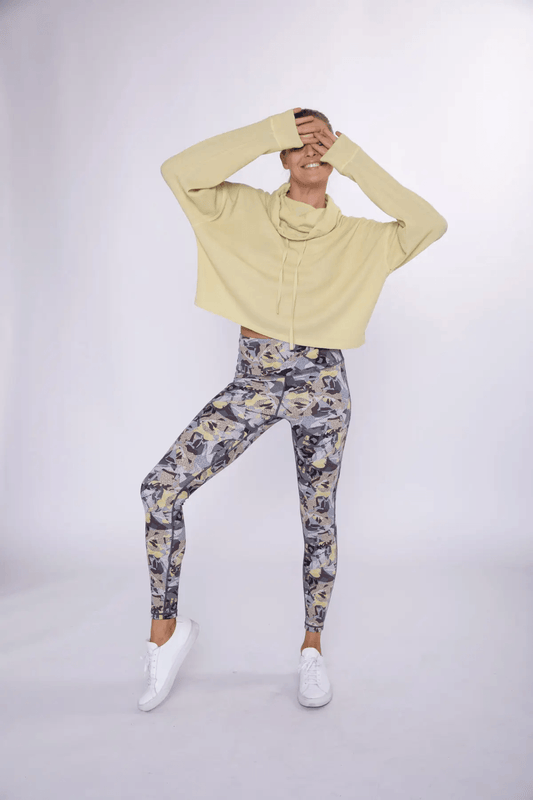 Mono B Boxy Mineral-Washed Cowl-Neck Pullover With Waffle Knit - Yellow22