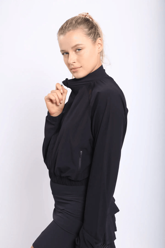 Mono B Crop Zip-Up Jacket With Mesh Raglan Detail - Black