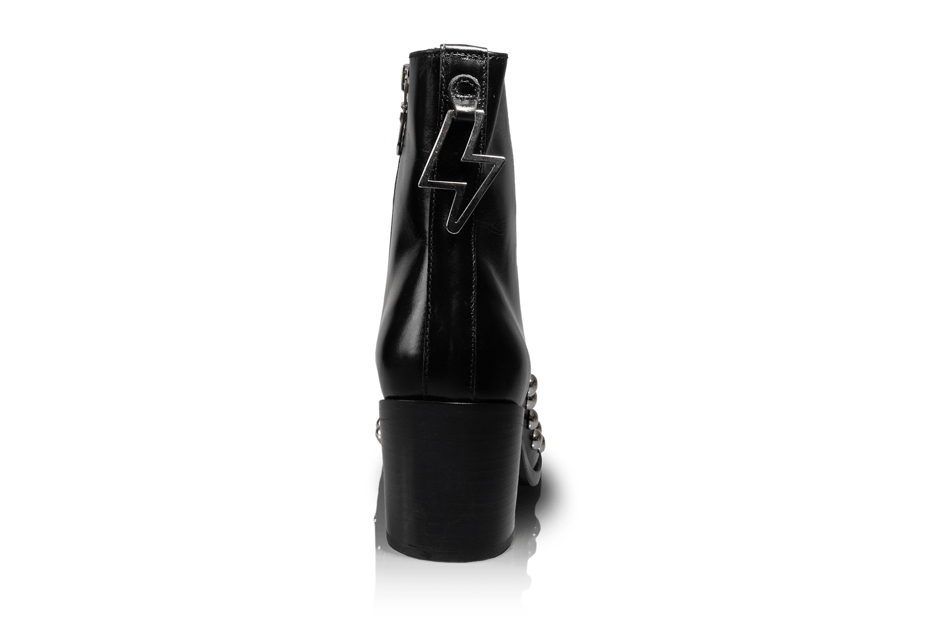 Looking for a city boot? Do it with style in our new THUNDER BLACK. Inspired by the Western style, but modernized with contemporary details that make it stand out. In black leather, with nickel-colored studs; and our BDG icon: a lightning bolt on the back. Leather sole for greater comfort.