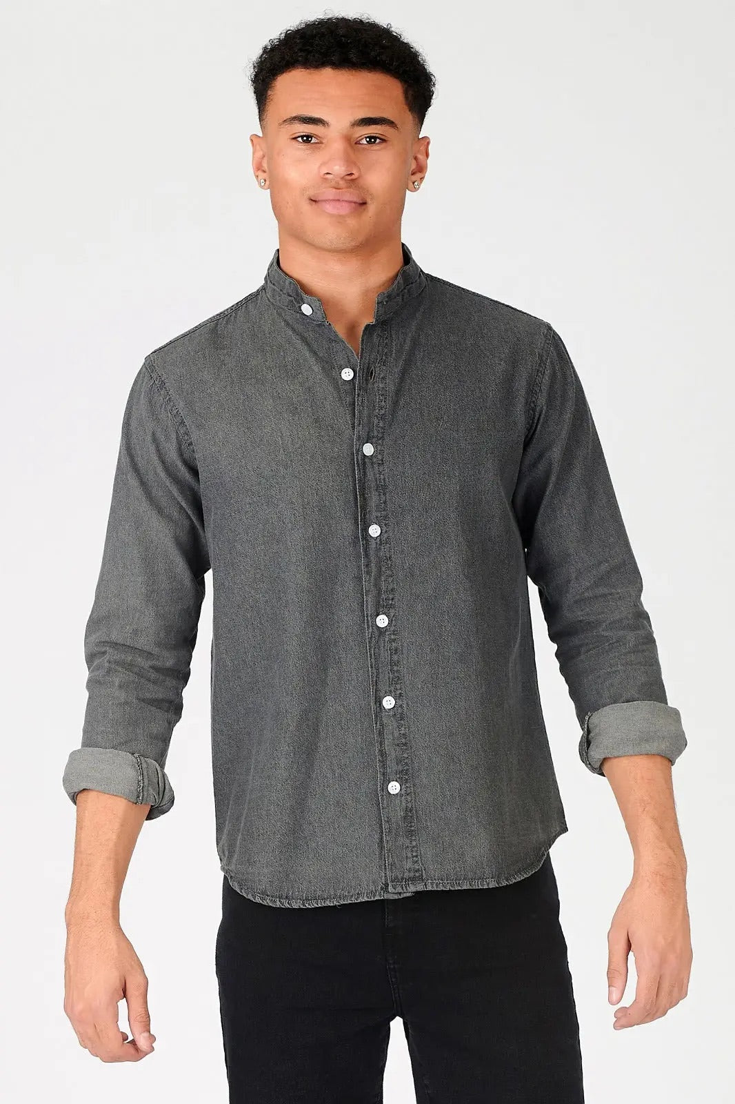 Men's Slim Fit Grandad Collar Denim Shirt
