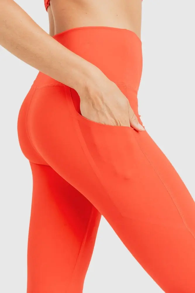 Mono B Laser-Cut and Bonded Essential Foldover High-Waisted Legging - Orange