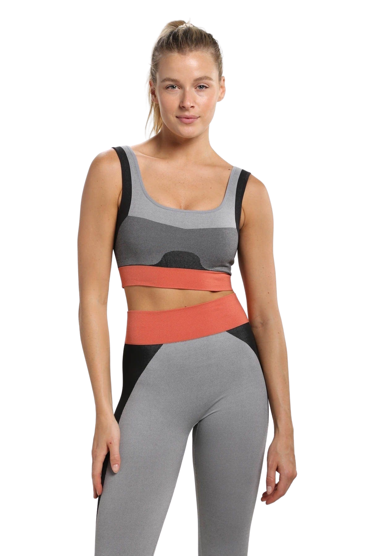 Mono B Seamless Color Block High-Waisted Legging - Grey