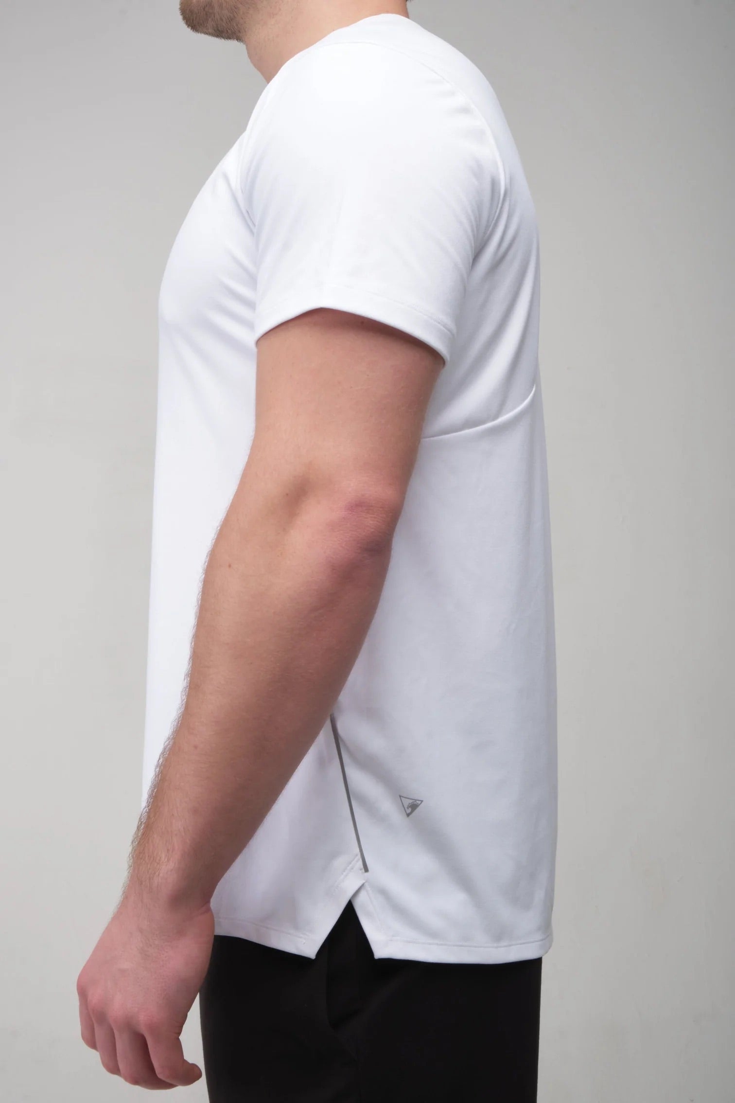 Features an athletic fit that hugs the chest and reflective back and side strips.