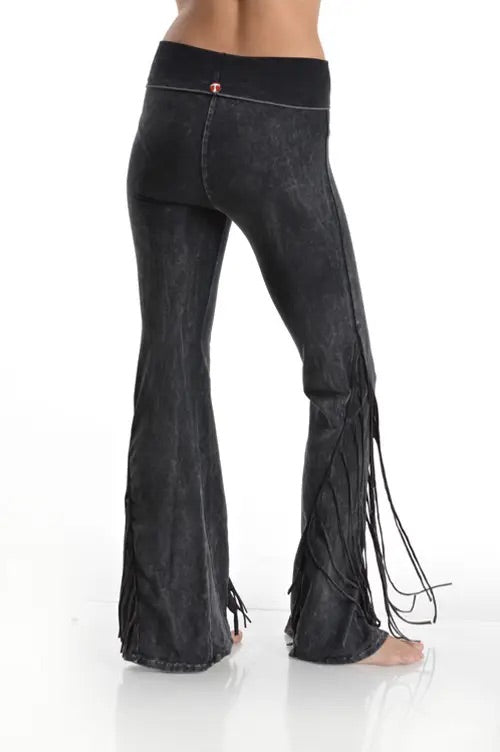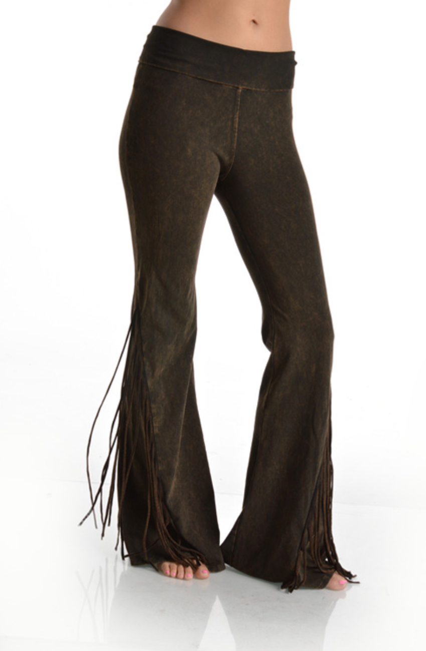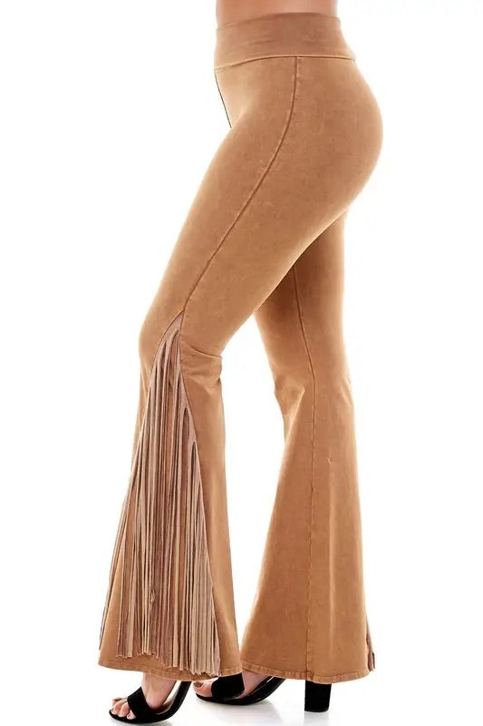 T-Party Mineral Wash Fringe Foldover Yoga Pants - Camel