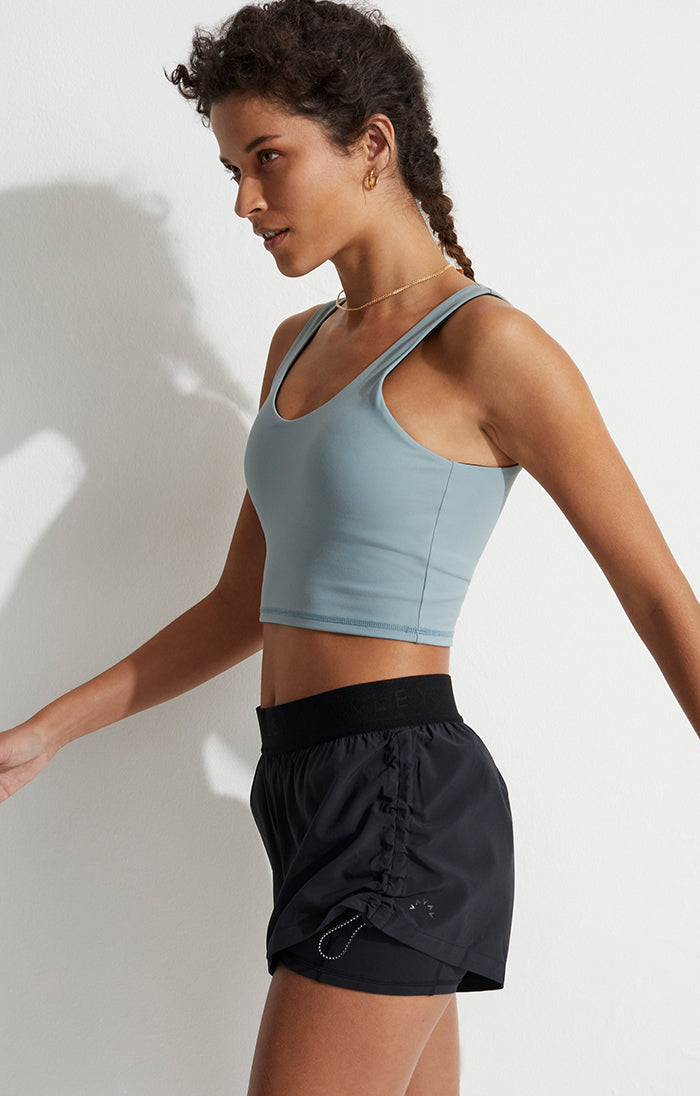 Mid-rise fit, super soft waistband, adjustable outer short and side leg pockets for all your essentials. Toggle and bungee at side seams to create gathered cinch.