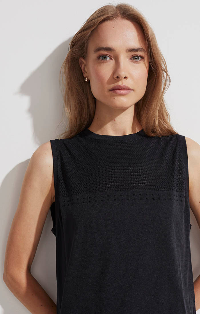Relaxed yet refined, this longline tank is a soft, seamless and lightweight performance layer with inbuilt breathability and contemporary mesh detailing.